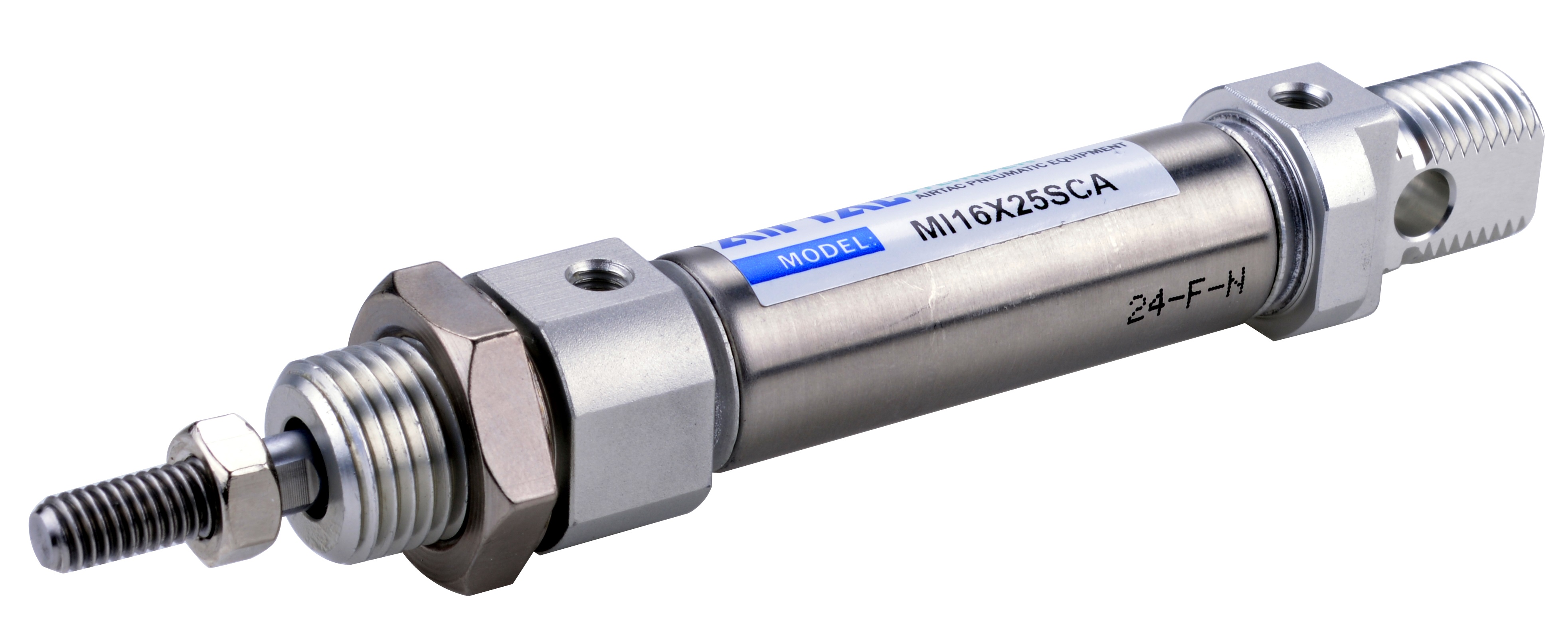 Цилиндры двустороннего действия имеют два отверстия для подвода сжатого воздуха – для выдвижения и втягивания штока соответственно.