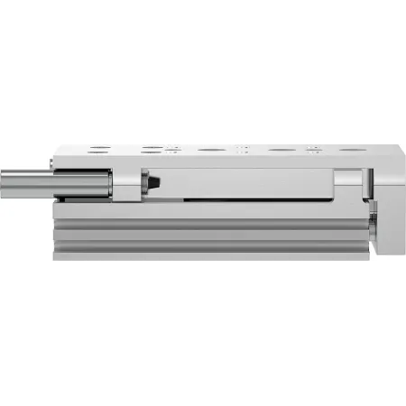 Цилиндры одностороннего действия имеют только одно отверстие пневматического подключения. Движение под действием сжатого воздуха осуществляется в одну сторону, возврат осуществляется при помощи пружины. Таким образом, для управления таким цилиндром требуется всего один пневматический сигнал.