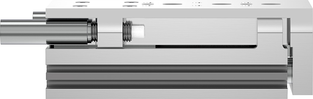 Кинетическая энергия физического тела вычисляется по формуле J=(m•V2)/2. Как видно, энергия линейно зависит от движущейся массы и квадратично – от скорости. При движении пневмопривода происходит перемещение не только массы, прикрепленной к его рабочему элементу (каретке или штоку), но также и массы движущихся частей самого пневмопривода. Повлиять на массу, к сожалению, в большинстве случает невозможно. При высокой динамике или высокой перемещаемой массе кинетическая энергия может оказаться настолько высокой, что приведет к существенному сокращению срока службы или выходу из строя пневмопривода. Для избежания подобных ситуаций применяют различные способы снижения скорости при подходе к конечному положению, например: