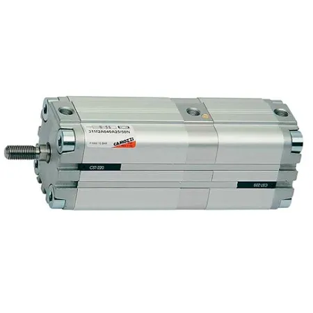 Цилиндры двустороннего действия имеют два отверстия для подвода сжатого воздуха – для выдвижения и втягивания штока соответственно.