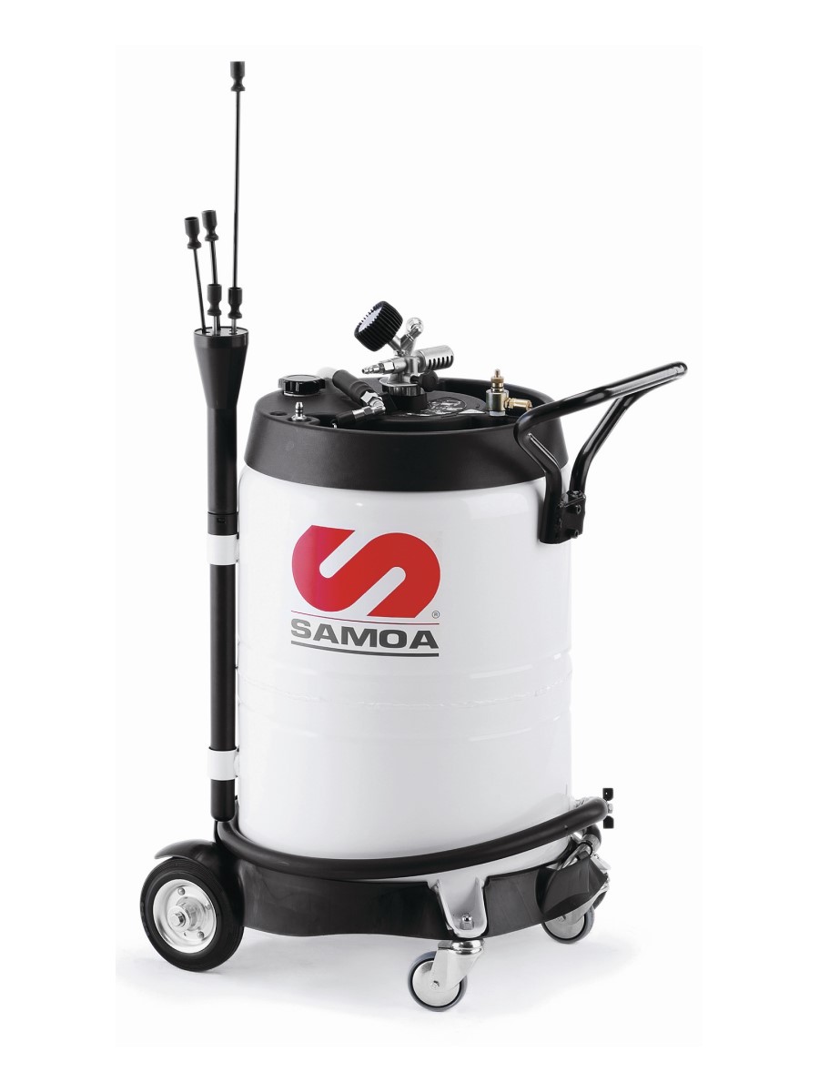 Мобильная установка для откачки отработанного масла. Масло всасывается пневматическим вакуумным насосом без движения и износа каких-либо деталей с помощью заборного щупа или переходника, вставленного в масляный щуп двигателя. После создания вакуума в баке установку можно использовать автономно, отсоединив от источника воздуха. Опорожнение выполняется через выпускной шланг путем создания давления с помощью насоса в емкость объемом 100 л. В комплект поставки этих установок входит предохранительный клапан, защищающий от сверхдавления.