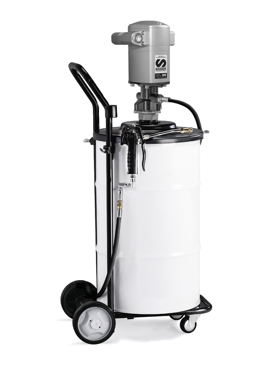 Мобильный пневматический солидолонагнетатель с насосом PM 35 с тележкой для бочек 50 кг.