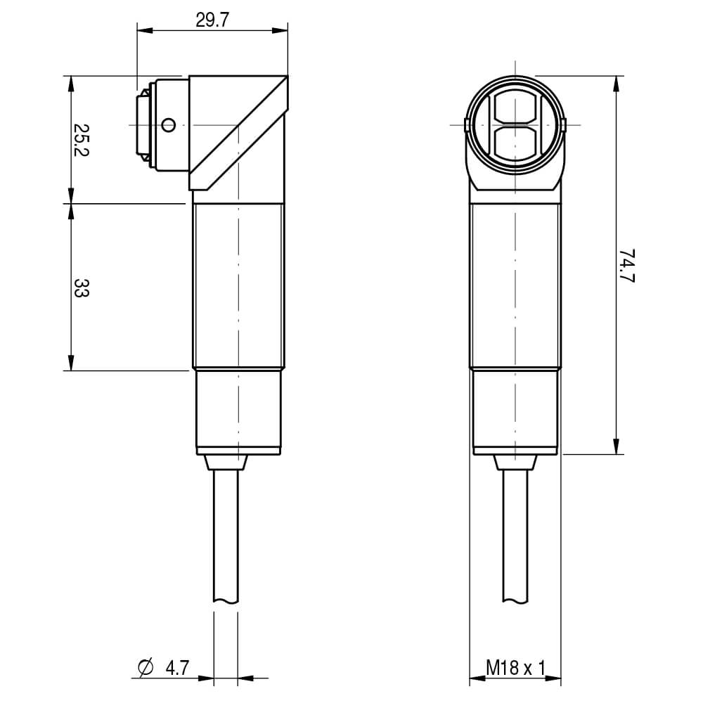 Дискретный выход: PNP/NPN • Диапазон измерения: 4500 мм • Электрическое подключение: кабель • Длина кабеля: 2м • Крепежная резьба: M18x1 • Класс защиты: IP67 • Рабочее напряжение: 12 ÷ 24 V DC • Материал корпуса: латунь никелированная