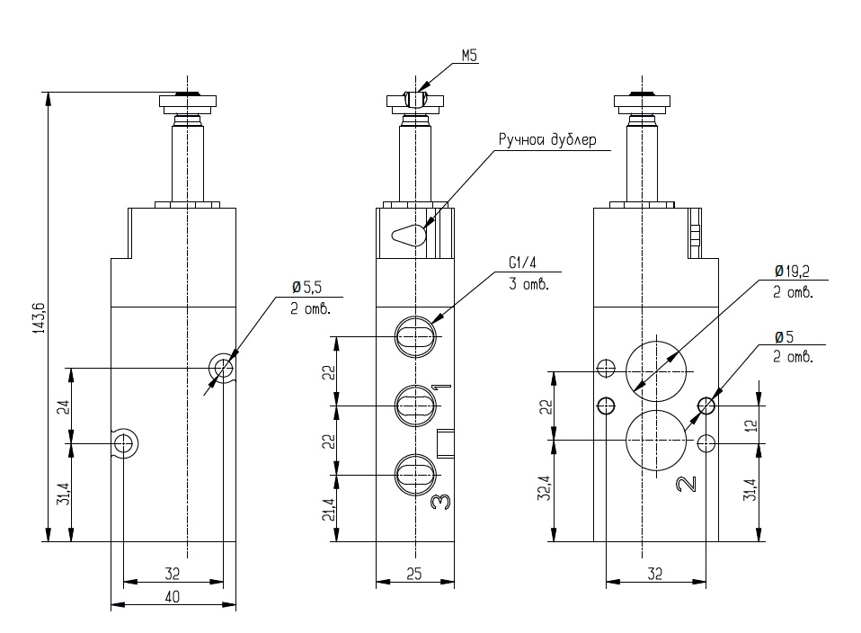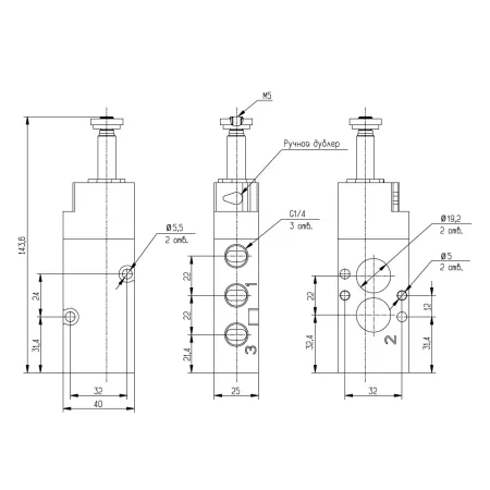 3/2 распределитель с электромагнитным управлением и пилотным каскадом.