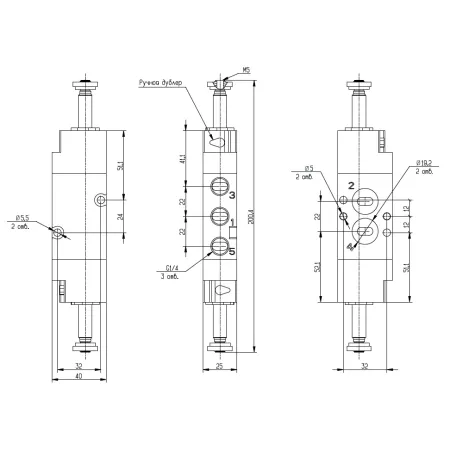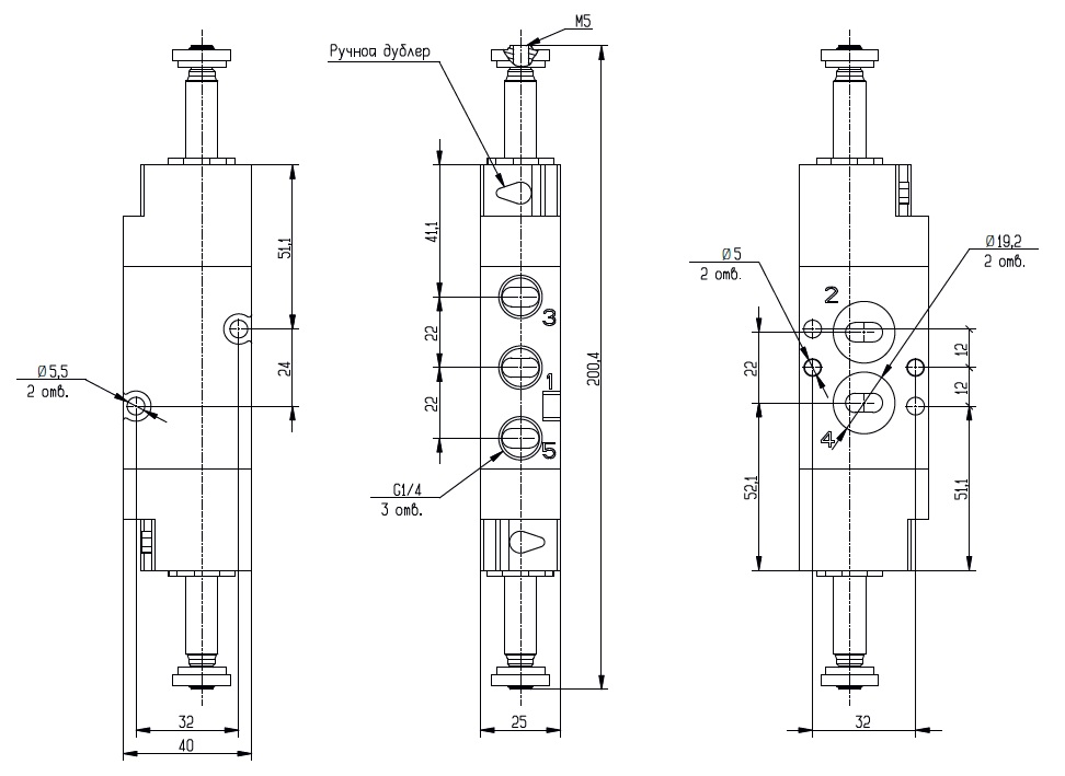 3/2 распределитель с электромагнитным управлением и пилотным каскадом.