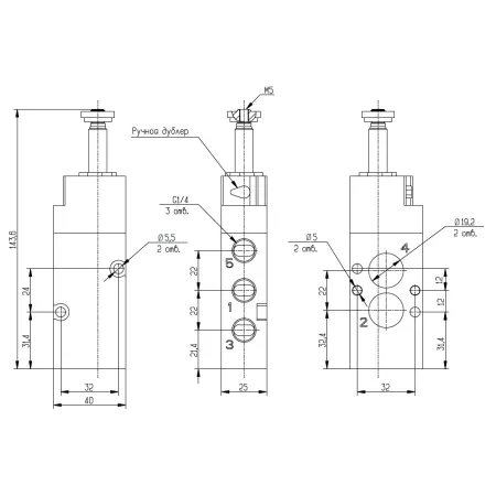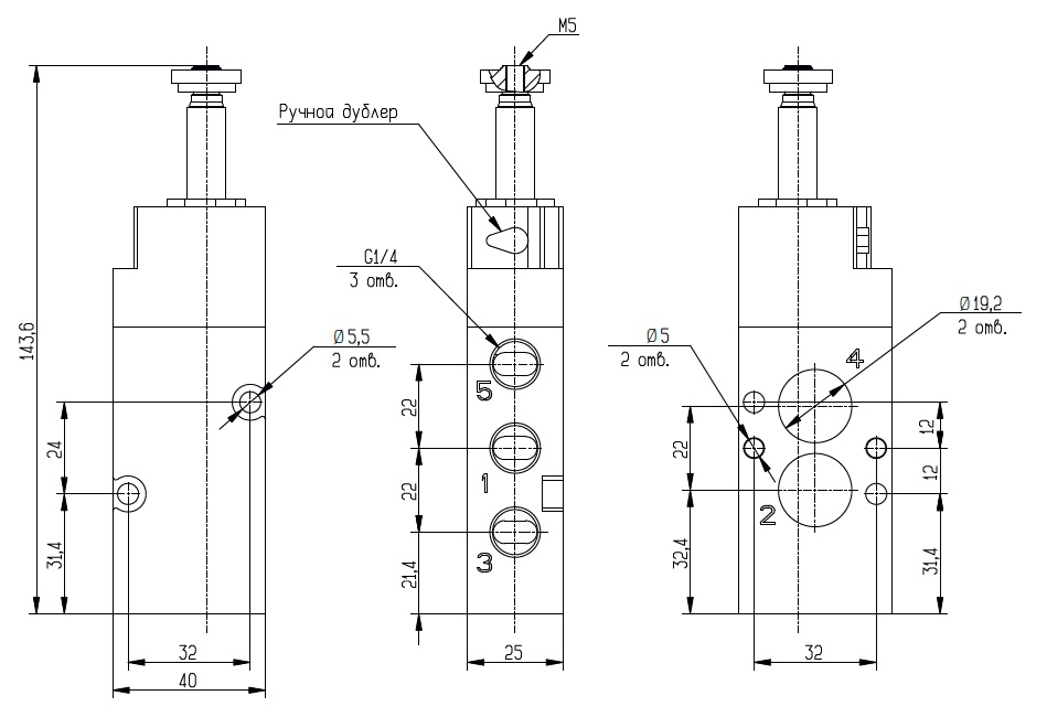3/2 распределитель с электромагнитным управлением и пилотным каскадом.