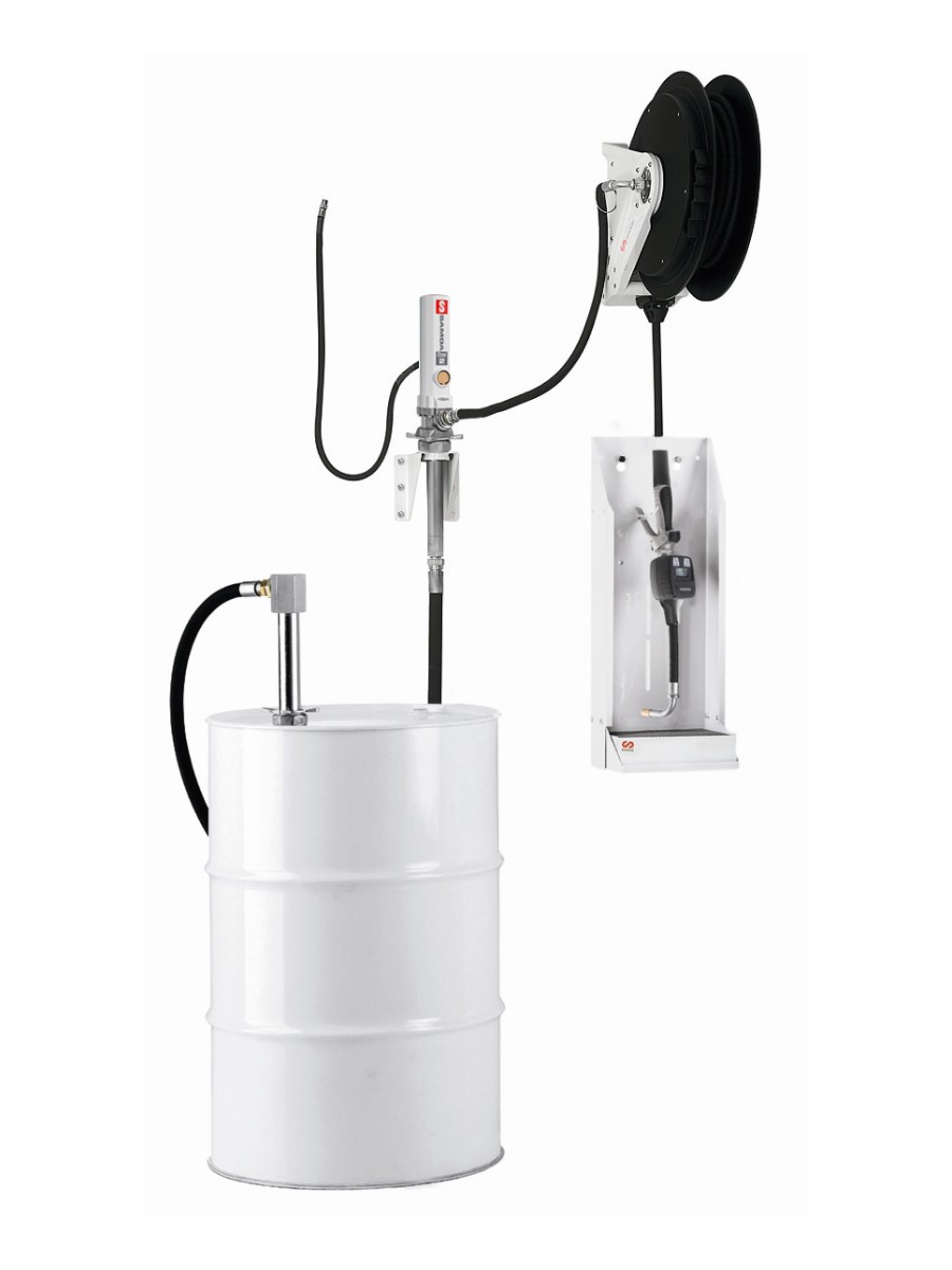 Стационарная пневматическая установка для раздачи масла в комплекте с электронным счетчиком - монтаж на стену.
