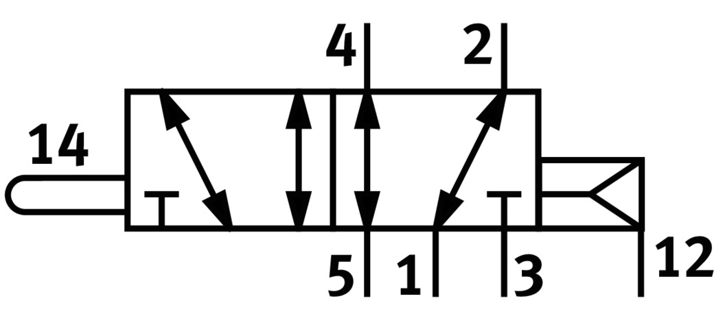 3/2 распределитель с электромагнитным управлением и пилотным каскадом.