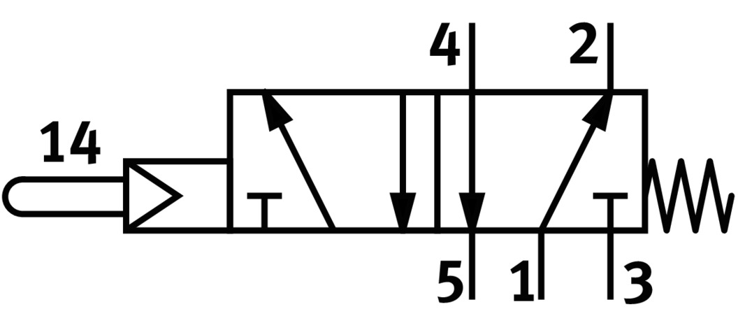 3/2 распределитель с электромагнитным управлением и пилотным каскадом.