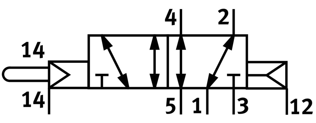 3/2 распределитель с электромагнитным управлением и пилотным каскадом.
