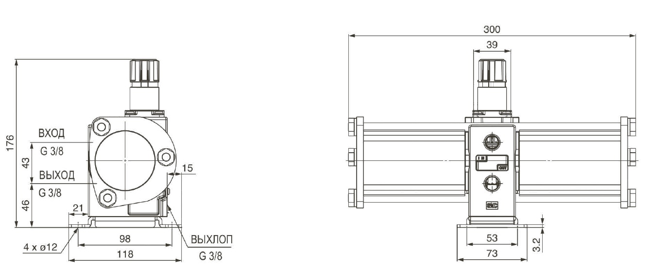 - Встроенный регулятор давления обеспечивает постоянное давление на выходе