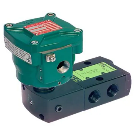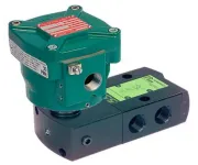 - непрямого действия с одним соленоидом (моностабильный, пружинный возврат) или с двумя соленоидами (бистабильный)