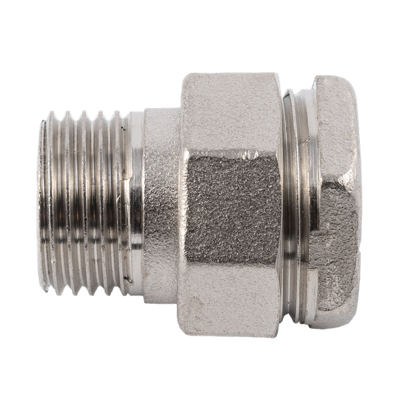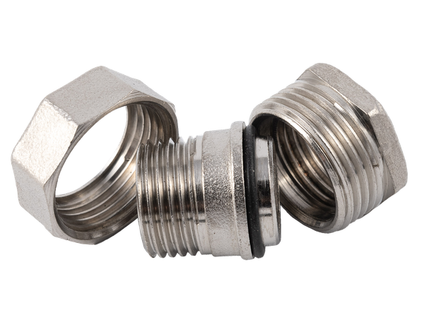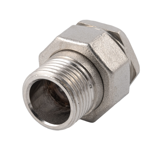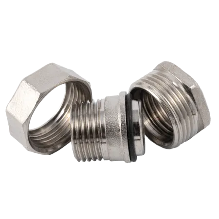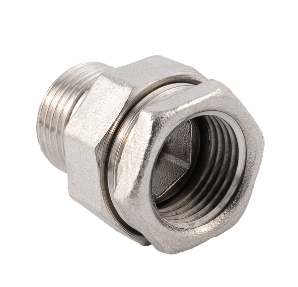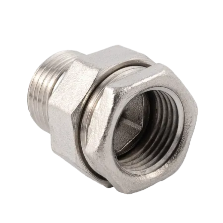 Форма фитинга: американка с внутр.-нар. резьбой • Подключение: G1/2 • Материал корпуса: латунь никелированная