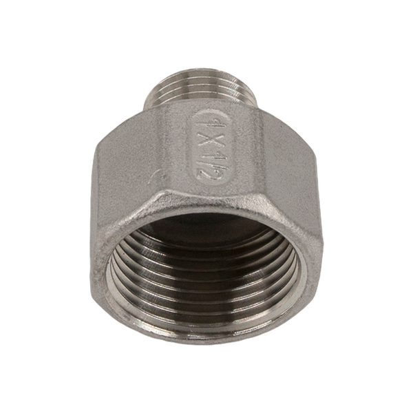 Форма фитинга: футорка расширяющая • Подключение: G1-G1/2 • Материал корпуса: сталь нержавеющая AISI 304