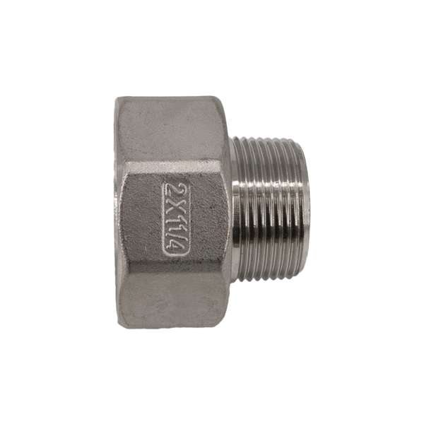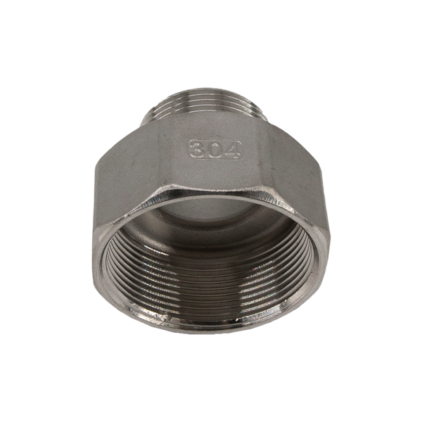 Форма фитинга: футорка расширяющая • Подключение: G2-G1 1/4 • Материал корпуса: сталь нержавеющая AISI 304