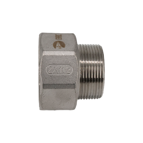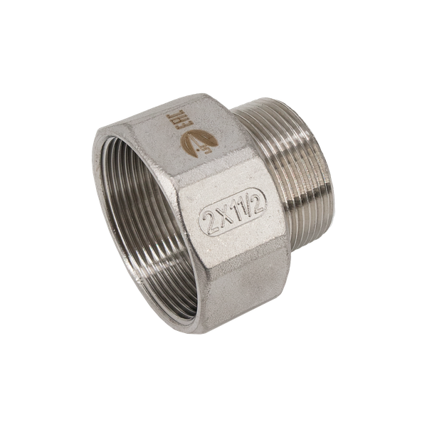 Форма фитинга: футорка расширяющая • Подключение: G2-G1 1/2 • Материал корпуса: сталь нержавеющая AISI 304