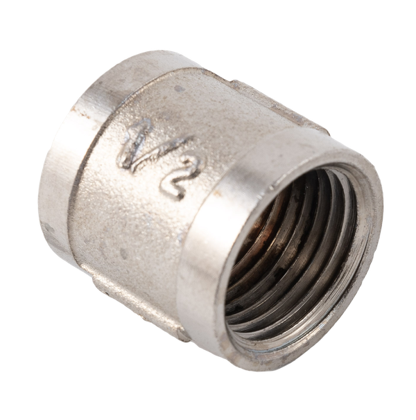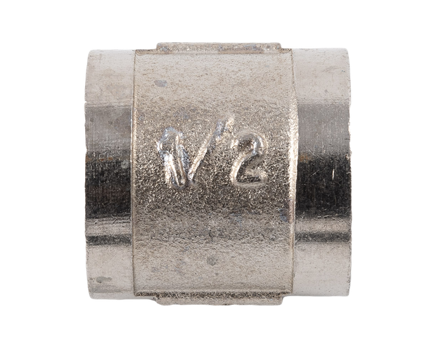 Форма фитинга: муфта • Подключение: G1/2 • Материал корпуса: латунь никелированная