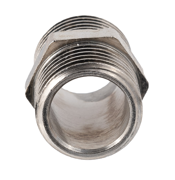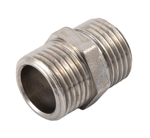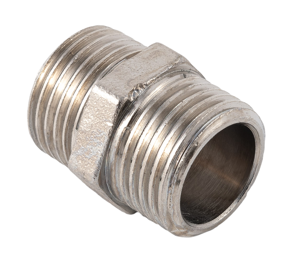 Форма фитинга: ниппель • Подключение: G1/2 • Материал корпуса: латунь никелированная