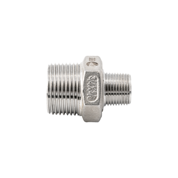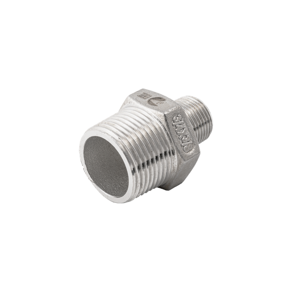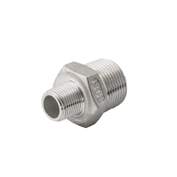 NK-NMH20х10/4 - Ниппель резьбовой переходной нерж., AISI304 DN20 х DN10 (3/4″ х 3/8″), PN16