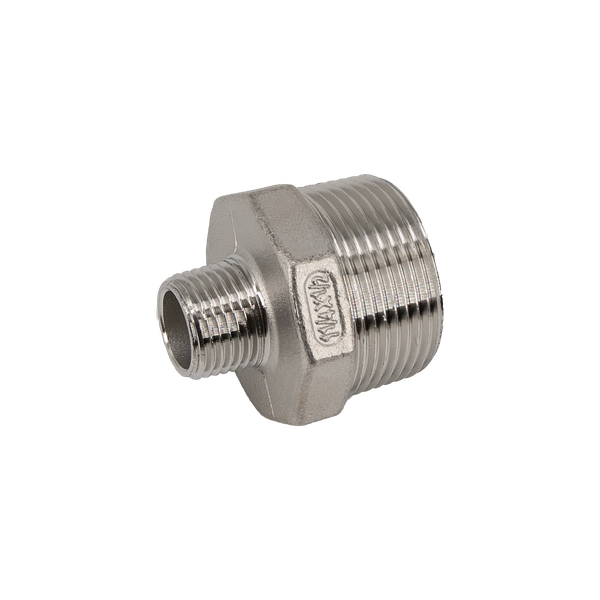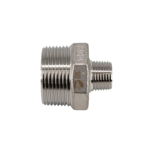 NK-NMH32х15/4 - Ниппель резьбовой переходной нерж., AISI304 DN32 х DN15 ( 1_1/4″ х 1/2″), PN16
