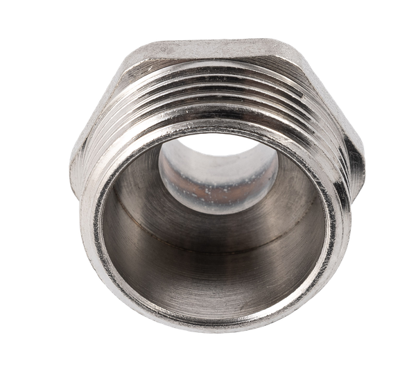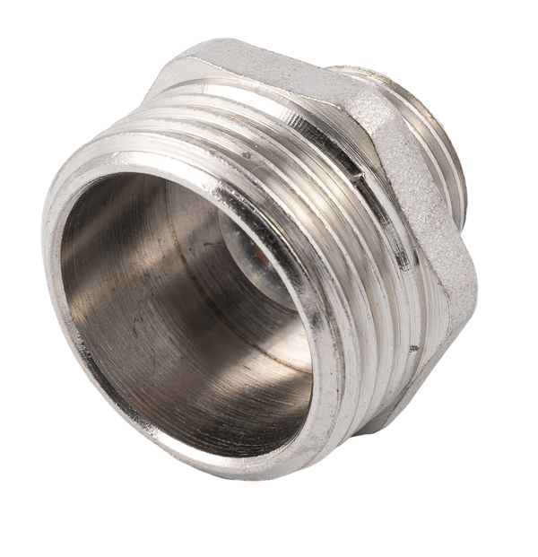 NK-NMHbn25х15 - Ниппель резьбовой переходной латунный никел., DN25 х DN15 (1″ х 1/2″), PN40