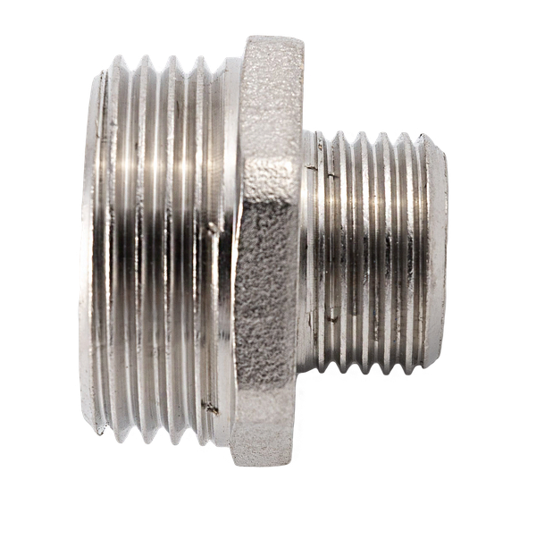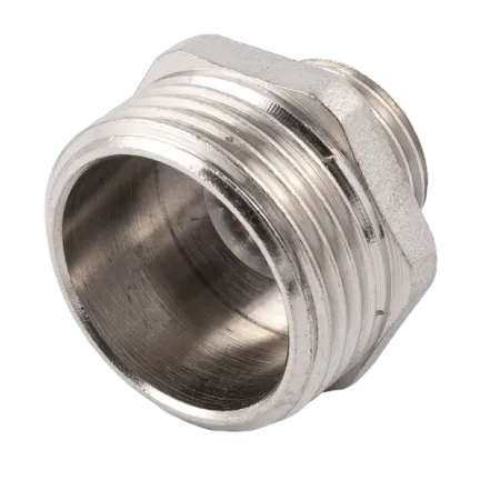 Форма фитинга: ниппель • Подключение: G1-G1/2 • Материал корпуса: латунь никелированная