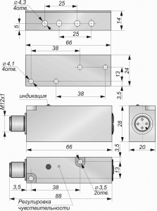Описание O013-NO/NC-PNP-P(с регулировкой, с кронштейном 66х24х14)