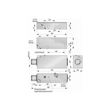 Характеристики O013-NO/NC-PNP-P(с регулировкой, с кронштейном 66х24х14)