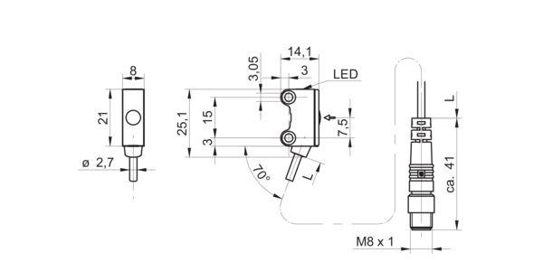 Дискретный выход: PNP/NPN • Диапазон измерения: 6000 мм • Электрическое подключение: разъём M8x1 4-пин, кабель • Длина кабеля: 0.2м • Класс защиты: IP67 • Рабочее напряжение: 12 ÷ 24 V DC • Материал корпуса: пластик