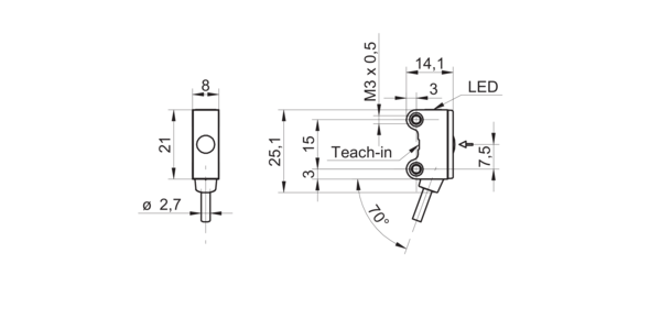 - датчик типа световой барьер: приемник