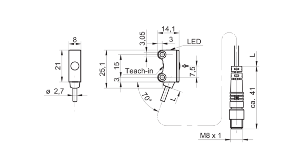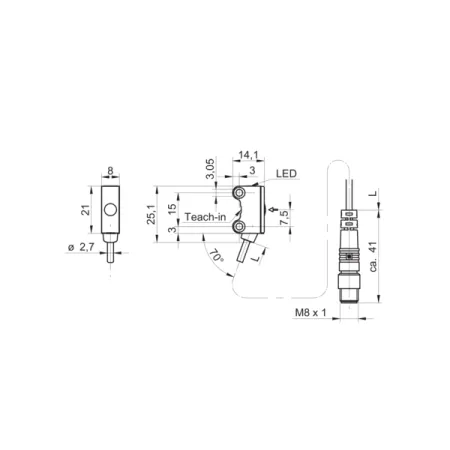 Дискретный выход: NPN • Диапазон измерения: 6000 мм • Электрическое подключение: разъём M8x1 4-пин, кабель • Длина кабеля: 0.2м • Класс защиты: IP67 • Рабочее напряжение: 12 ÷ 24 V DC • Материал корпуса: пластик