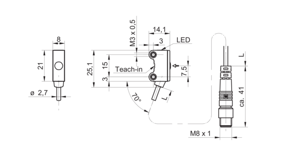 Дискретный выход: NPN • Диапазон измерения: 6000 мм • Электрическое подключение: разъём M8x1 4-пин, кабель • Длина кабеля: 0.2м • Класс защиты: IP67 • Рабочее напряжение: 12 ÷ 24 V DC • Материал корпуса: пластик