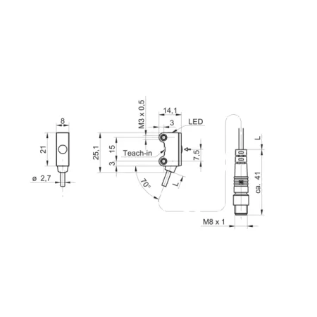 Дискретный выход: PNP • Диапазон измерения: 6000 мм • Электрическое подключение: разъём M8x1 4-пин, кабель • Длина кабеля: 0.2м • Класс защиты: IP67 • Рабочее напряжение: 12 ÷ 24 V DC • Материал корпуса: пластик