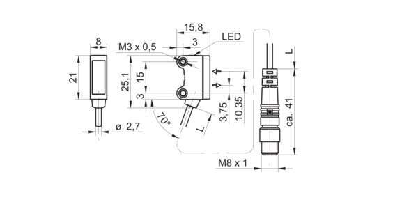 Дискретный выход: PNP/NPN • Диапазон измерения: 120 мм • Исполнение: с подавлением заднего фона • Электрическое подключение: разъём M8x1 4-пин, кабель • Длина кабеля: 0.2м • Класс защиты: IP67 • Рабочее напряжение: 12 ÷ 24 V DC • Материал корпуса: пластик