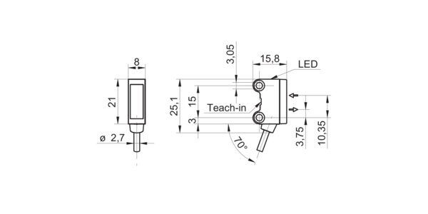 Дискретный выход: NPN • Диапазон измерения: 175 мм • Исполнение: с подавлением заднего фона • Электрическое подключение: кабель • Длина кабеля: 2м • Класс защиты: IP67 • Рабочее напряжение: 12 ÷ 24 V DC • Материал корпуса: пластик