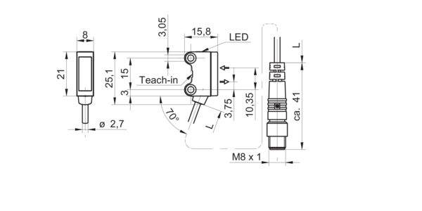 Дискретный выход: NPN • Диапазон измерения: 120 мм • Исполнение: с подавлением заднего фона • Электрическое подключение: разъём M8x1 4-пин, кабель • Длина кабеля: 0.2м • Класс защиты: IP67 • Рабочее напряжение: 12 ÷ 24 V DC • Материал корпуса: пластик