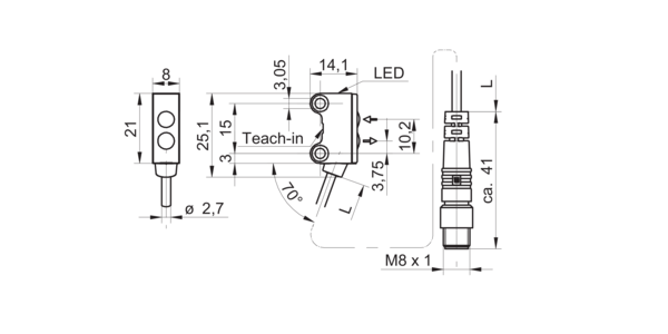 Дискретный выход: PNP/NPN • Диапазон измерения: 72 мм • Исполнение: с подавлением заднего фона • Электрическое подключение: разъём M8x1 4-пин, кабель • Длина кабеля: 0.2м • Класс защиты: IP67 • Рабочее напряжение: 12 ÷ 24 V DC • Материал корпуса: пластик