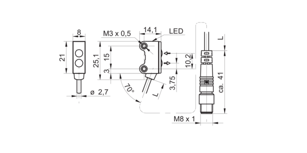Дискретный выход: PNP • Диапазон измерения: 50 мм • Исполнение: с подавлением заднего фона • Электрическое подключение: разъём M8x1 4-пин, кабель • Длина кабеля: 0.2м • Класс защиты: IP67 • Рабочее напряжение: 12 ÷ 24 V DC • Материал корпуса: пластик