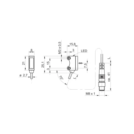Дискретный выход: PNP/NPN • Диапазон измерения: 1200 мм • Электрическое подключение: разъём M8x1 4-пин, кабель • Длина кабеля: 0.2м • Класс защиты: IP67 • Рабочее напряжение: 12 ÷ 24 V DC • Материал корпуса: пластик