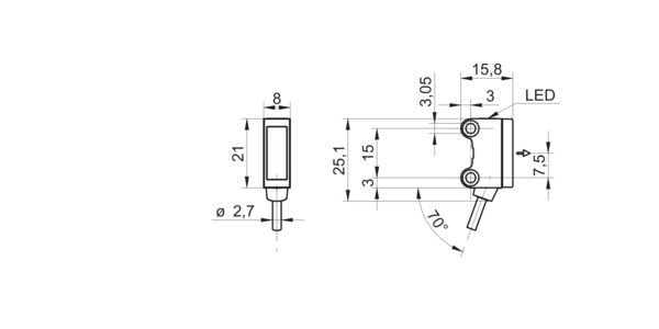 - датчик типа световой барьер: передатчик