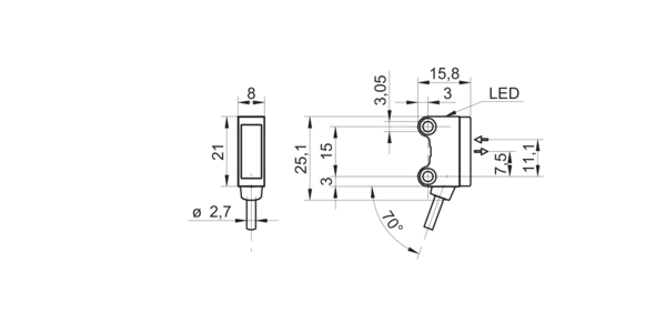 Дискретный выход: PNP/NPN • Диапазон измерения: 200 мм • Электрическое подключение: кабель • Длина кабеля: 2м • Класс защиты: IP67 • Рабочее напряжение: 12 ÷ 24 V DC • Материал корпуса: пластик