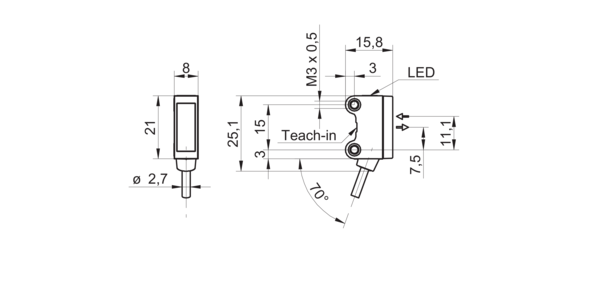 Дискретный выход: PNP • Диапазон измерения: 200 мм • Электрическое подключение: кабель • Длина кабеля: 2м • Класс защиты: IP67 • Рабочее напряжение: 12 ÷ 24 V DC • Материал корпуса: пластик