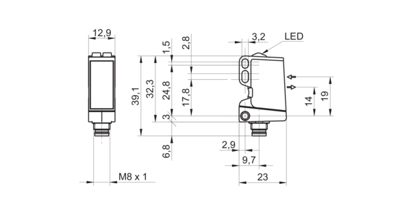 Дискретный выход: PNP/NPN • Диапазон измерения: 5000 мм • Электрическое подключение: разъём M8x1 4-пин • Класс защиты: IP67 • Рабочее напряжение: 12 ÷ 24 V DC • Материал корпуса: пластик