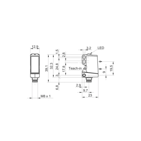 Дискретный выход: PNP/NPN • Диапазон измерения: 300 мм • Электрическое подключение: разъём M8x1 4-пин • Класс защиты: IP67 • Рабочее напряжение: 12 ÷ 24 V DC • Материал корпуса: пластик