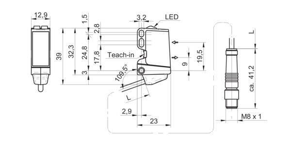 Дискретный выход: PNP/NPN • Диапазон измерения: 300 мм • Электрическое подключение: разъём M8x1, кабель • Длина кабеля: 0.2м • Класс защиты: IP67 • Рабочее напряжение: 12 ÷ 24 V DC • Материал корпуса: пластик