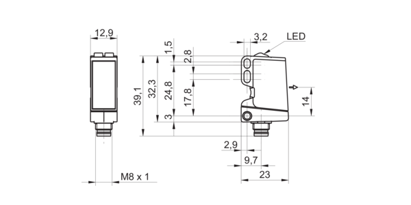 Диапазон измерения: 15000 мм • Электрическое подключение: разъём M8x1 4-пин • Класс защиты: IP67 • Рабочее напряжение: 12 ÷ 24 V DC • Материал корпуса: пластик