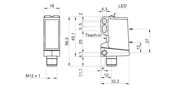 Дискретный выход: PNP/NPN • Диапазон измерения: 550 мм • Исполнение: с подавлением заднего фона • Электрическое подключение: разъём M12x1 4-пин • Класс защиты: IP67 • Рабочее напряжение: 12 ÷ 24 V DC • Материал корпуса: пластик