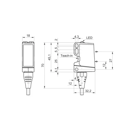 Дискретный выход: NPN • Диапазон измерения: 550 мм • Исполнение: с подавлением заднего фона • Электрическое подключение: кабель • Длина кабеля: 2м • Класс защиты: IP67 • Рабочее напряжение: 12 ÷ 24 V DC • Материал корпуса: пластик