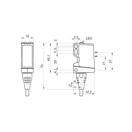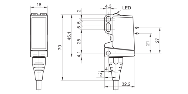 Дискретный выход: PNP/NPN • Диапазон измерения: 8000 мм • Электрическое подключение: кабель • Длина кабеля: 2м • Класс защиты: IP67 • Рабочее напряжение: 12 ÷ 24 V DC • Материал корпуса: пластик