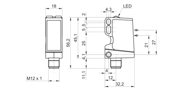 Дискретный выход: PNP/NPN • Диапазон измерения: 8000 мм • Электрическое подключение: разъём M12x1 4-пин • Класс защиты: IP67 • Рабочее напряжение: 12 ÷ 24 V DC • Материал корпуса: пластик